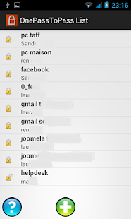OnePassToPass can store all your passwords in a secure list. You will need only one password to access all your list.Quick handling, automatic generation, fiability indicator, encrypted storage, import and export with the SD card. Password manager.