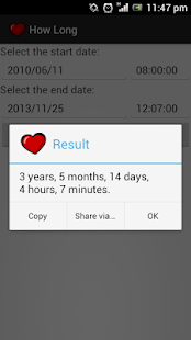 The application returns the difference between two dates.This app was initially developed to calculate "how long" I'm dating.